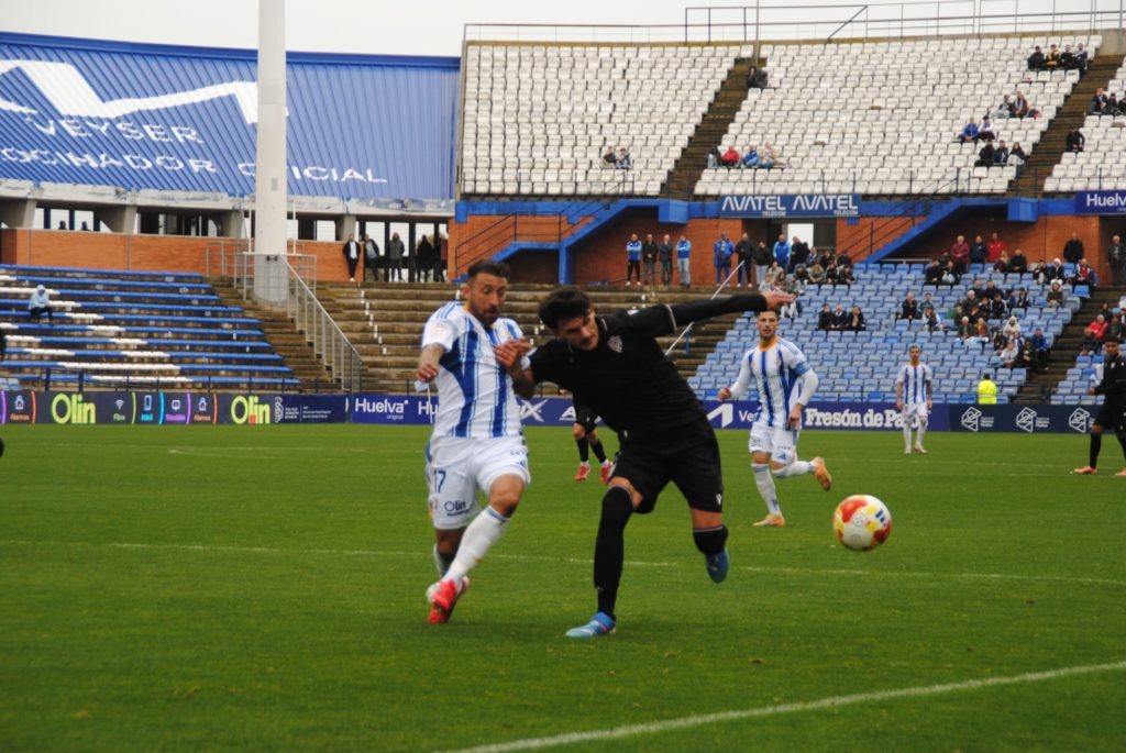 El Recre salió al campo con las ideas muy claras, ganar los tres puntos en juegos y presionaba al Almería B. arrinconándolo en su área, con una defensa bien colocada el Recre jugaba por banda con centro sobre la portería defendida por Jesús López, era difícil entrar por medio con jugadas bien trenzadas ya que habías demasiadas piernas Almeriense, jugaban al contra ataque cuando veían a la defensa Onubense adelantada, Irene Burgos solo ante Jero Lario ya batido se la cruzó y salió rozando el palo derecho, la siguiente jugada Alex Bernal fue derribado claramente el área penalti claro el colegiado no pito nada el Colombino protector bastante enfadado.